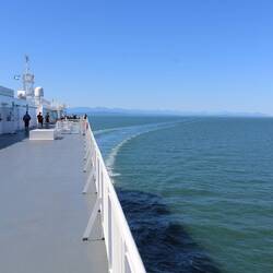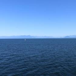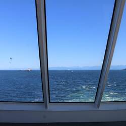 Heute geht es nach Vancouver! Auf halber Strecke entdecken wir in der Ferne einen Wal; wir vermuten, es ist ein Blauwal oder Grauwal. 🐳