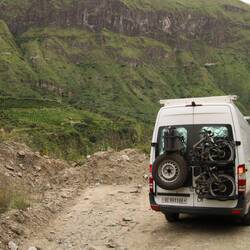 Die Spur windet sich über schmale, kurvenreiche Strassen, die dem Abhang jeweils ganz schön nahe kommen. Unser Ziel: der Mirador del Oso Andino. DortBaca selengkapnya