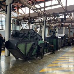 Am Sonntag geht Dillon mit Olga, Rainer Brigitte und Peter Ibarra erkunden. Erster Stopp: das Geburtshaus des Inkakönigs Atahualpa. 👑 Als zweiten Stopp besuchen wir die alte Textilfabrik, die in den Jahren 1924–1965 Wolle zu Textilien verarbeitet hat. 🧶 Die Arbeiter/innen mussten hier teilweise 12 Stunden am Tag arbeiten und durften nur einmal täglich zur Toilette – heute, mit unseren Arbeitsrechten, unvorstellbar. 😳