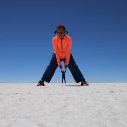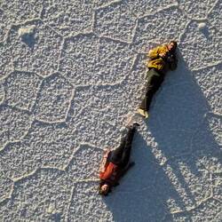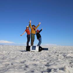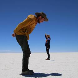 Der Salar de Uyuni ist bekannt für die mega lustigen Illusionen, die man dort fotografieren kann.