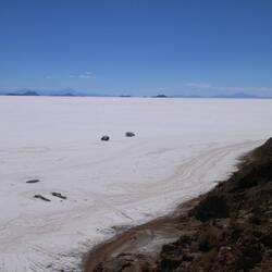 Wir fahren auf ein längst ausgetrocknetes Meer. Zurück geblieben ist eine endlose, strahlend weisse Salzkruste. Der Salar de Uyuni, der grösste Salzsee der Welt, ist so gewaltig und gleichmässig,Read more
