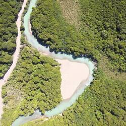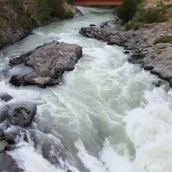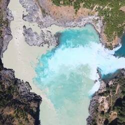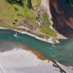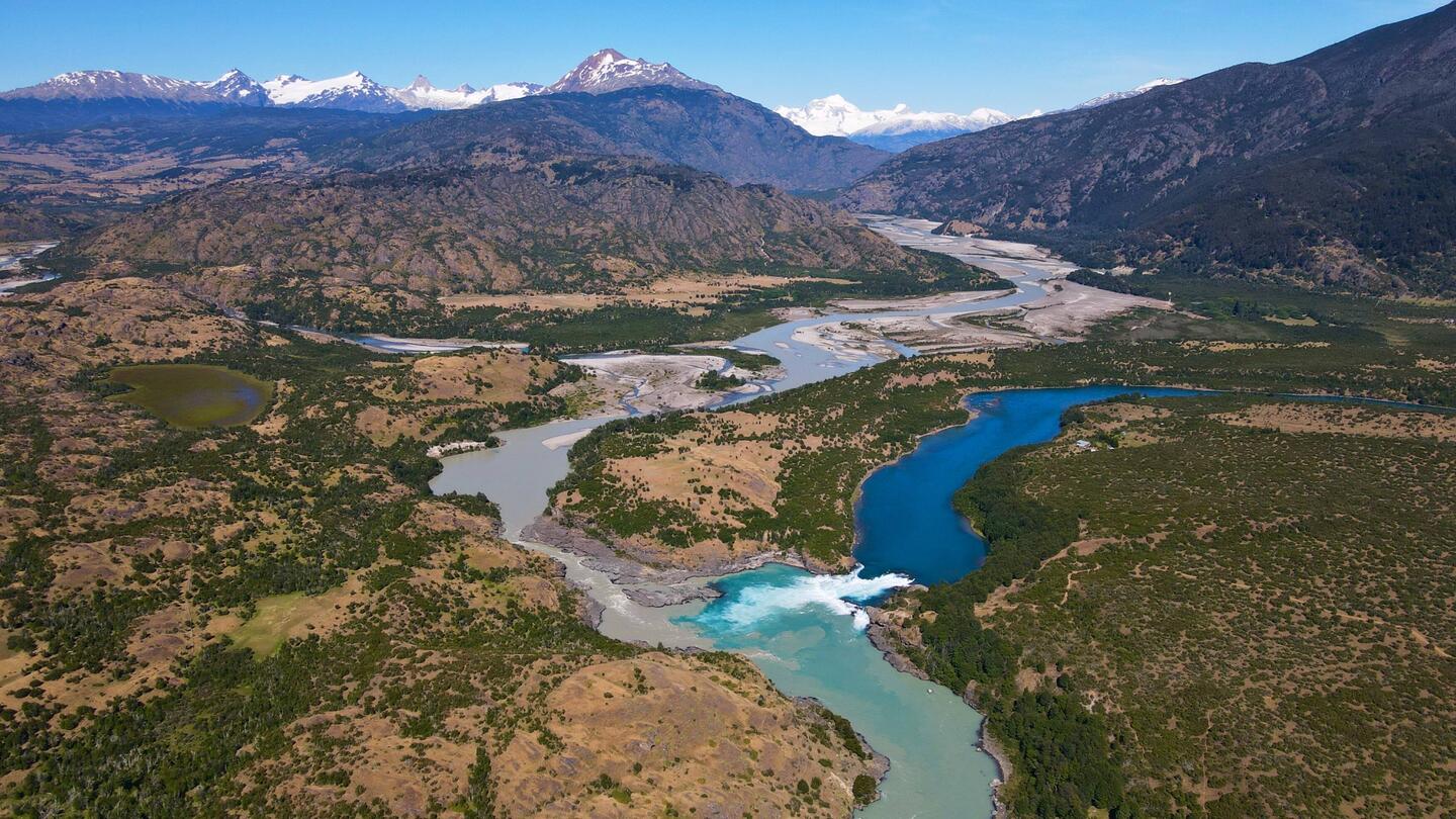Hier treffen zwei Flüsse aufeinander: Einer leuchtet in schönem Blau, der andere nicht.