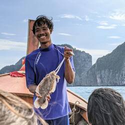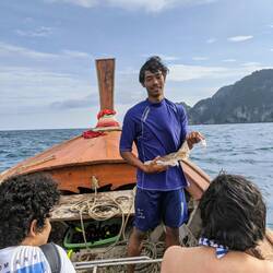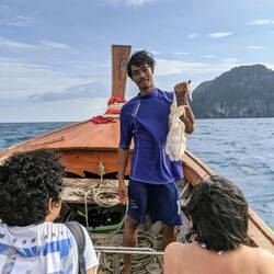 Wir hatten 2 Guides mit an Board, einer steuerte den Motor, der andere war mit seinen 49 Kilos, anscheinend das Gegengewicht, am Anfang des Bootes 🤣