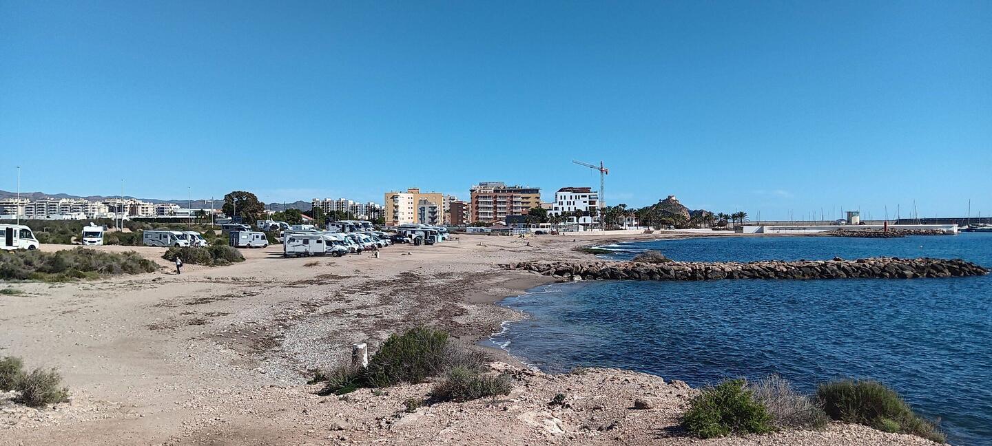 Wir sind heute am Strand von Palomares. Der ist schon mehrfach eine Zwischenüberbrückung von Nord nach Süd oder umgekehrt. Letztes Jahr waren wir hier sogar noch baden.
