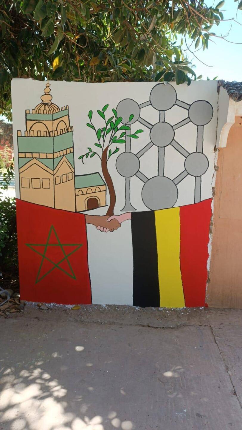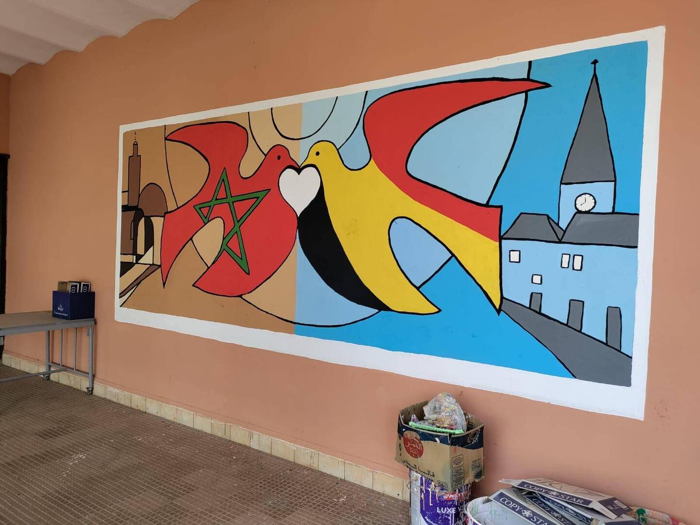 Vandaag was de dag om het schilderwerk af te werken: één groep werkte aan onze tekening in het Lycée, omdat het schilderwerk wat trager ging, bleven Michaël, Iann en ik wat langer om het af teLæs mere