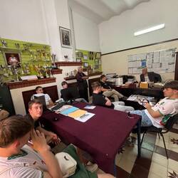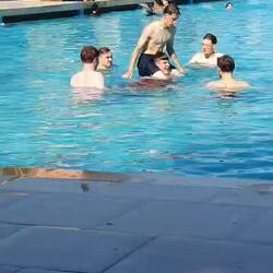 Zij die geen zin hadden in een healing bleven wat langer in hun 'beddeke' liggen. Daarna hielpen enkele leerlingen met het afwerking van de bezetting. Tot slot trok de groep terug naar la piscine. EenLæs mere