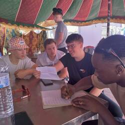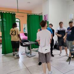 We keerden terug naar het Lycée om tegen enkele leerlingen een potje voetbal te spelen. De coach zag dat het goed ging: in de eerste helft ging het mooi over en weer, maar in de tweede helft speeldeLæs mere
