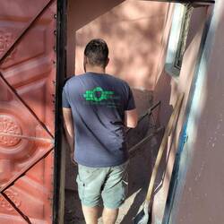 Deze ochtend konden we nog eens wat werk verrichten: de cementbezetting in een nieuw lokaal + een nieuw lekje verf voor de buitenmuren. De bezetters gingen met argwaan aan het werk, maar toen deLæs mere