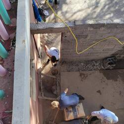 Vandaag hadden we een eerste werkochtend (na de middag wordt het hier moordend warm) In de ochtend gingen Jef en Fabrice de cement regelen, voor het zand zorgde een kar met ezel en de steentjes dieLæs mere