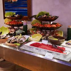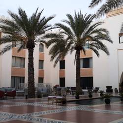 Im Innenhof des Hotels gabs nochmals einen Drink. Zum Abendessen hatten wir uns - immer noch irgendwie gesättigt vom Vorabend - auf was Leichtes verlegt. Salat und ein Clubsandwich.