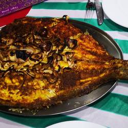 Zum Abendessen gab es frischen leckeren Fisch. Hamed ging erst ohne uns bestellen, damit wir den Preis für Omanis und nicht den für Touristen bezahlen mussten 🤣.