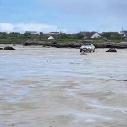 Hier kann man bei Ebbe mit dem Auto über den Strand nach Omey Island fahren.