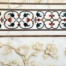 The Taj Mahal took 22 years to build, and it was commissioned by the Mughal emperor Shah Jahan to hold the tomb of his third and favorite wife. His tomb is also there. The reason it took so long was the detailed craftsmanship. The building is made of white Indian marble, with many carved details, especially inside where we couldn’t take photos. All of the decorative work that is not white is semi-precious stone inlay work. The calligraphy of Muslim prayers around the huge doors are inlaid black onyx. Floral work was done with lapis lazuli, carnelian, malachite, turquoise, mother of pearl, and more. Amazing! And the surrounding gardens are beautiful and peaceful also.