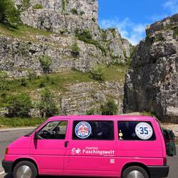 Unterkunft in Brügge, unten der Bus, oben wir.