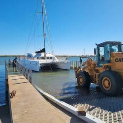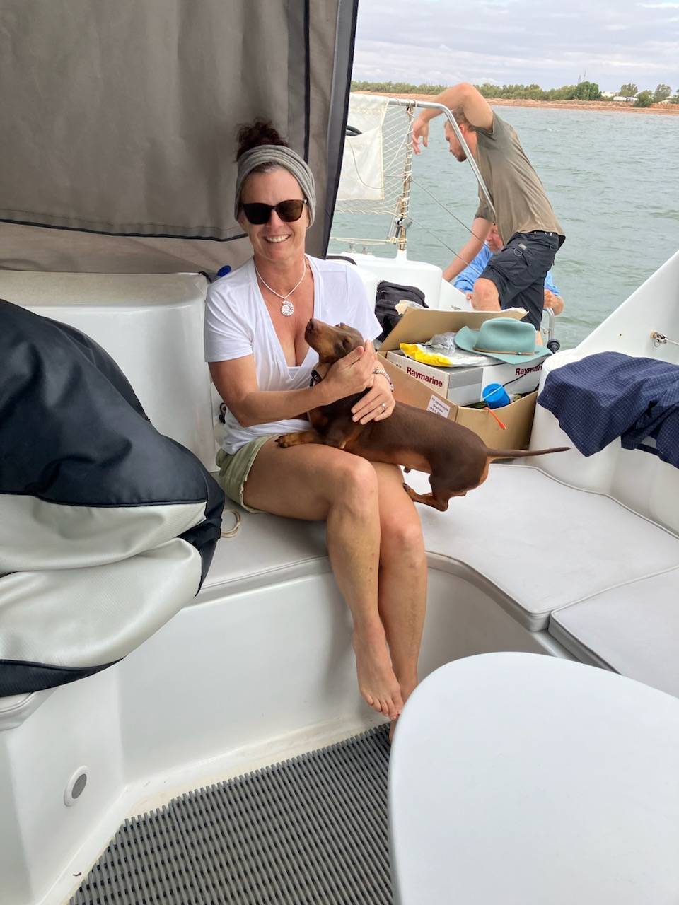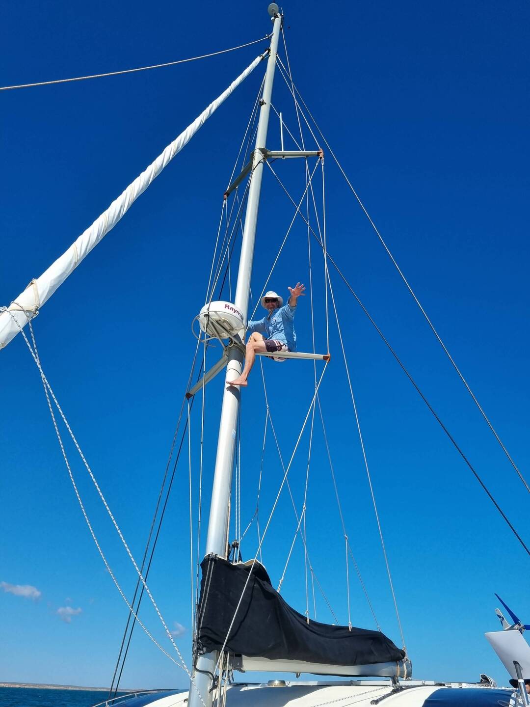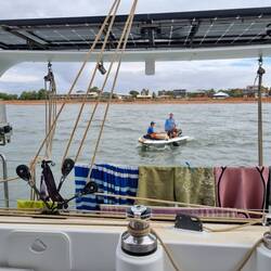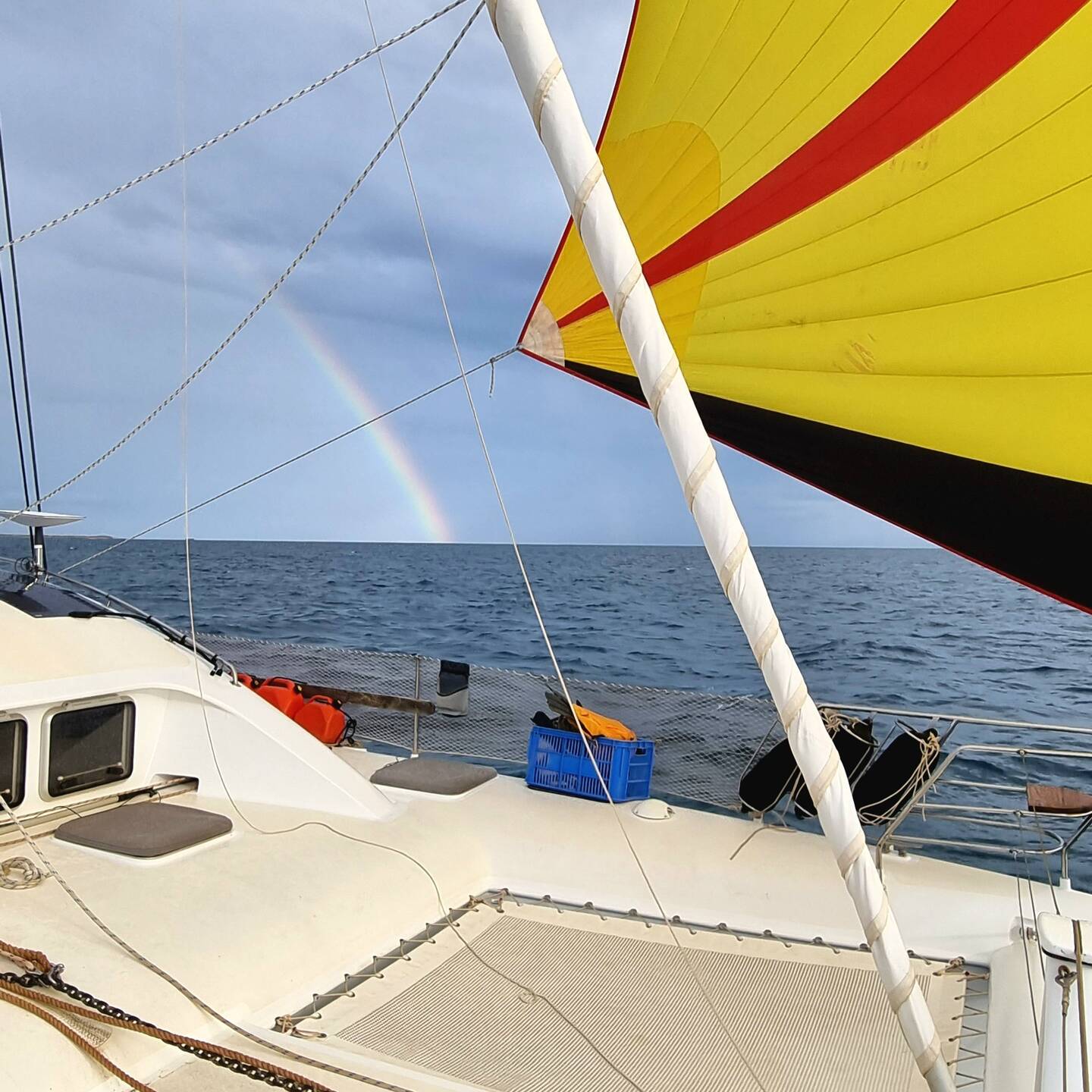 A raining 🌧 gloomy ⛵️ into Dampier, highlights being spinnaker, 🌈 and a mackerel. A busy stayover. Day 1: fit the just arrived (we so lucky we didnt wait in Carnarvon for these) Kaptain BoatBaca lagi