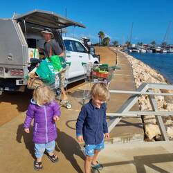 We are finally ready to set ⛵️...food loaded, 🍷 stacked and 🍺 chilling. The Grandies kindly helped with last shop and unpack & despite being sooooo tempted to stow them away we eventuallyBaca lagi