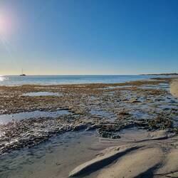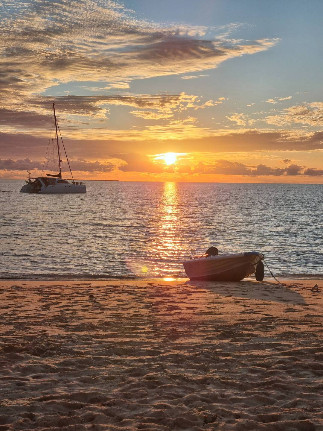Motor ⛵️ & safe arrival into Yardie. Big swell but the entry ok, as OtD gently surfed in. Unfortunately the 🌊 break was too big for 🏄♂️ so it was an afternoon of ⛱️ 🦪 & sunsetBaca lagi
