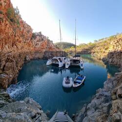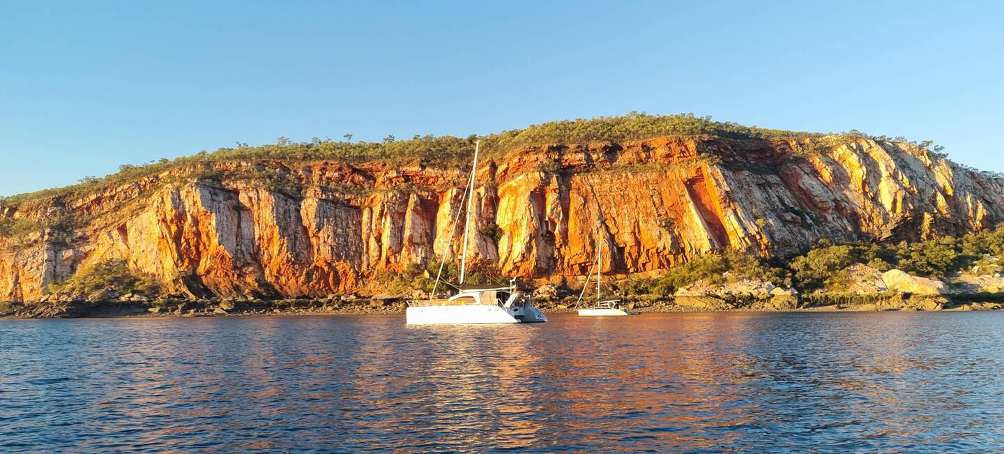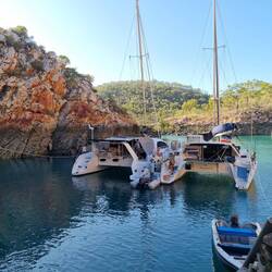 We left Dugong Bay with exiting tide, awesome trip with whirlpools and glassoff. Molema 🏝 2 day stopover, waiting for start of spring tides before moving to Horizontal Falls. Super cool anchorageBaca lagi