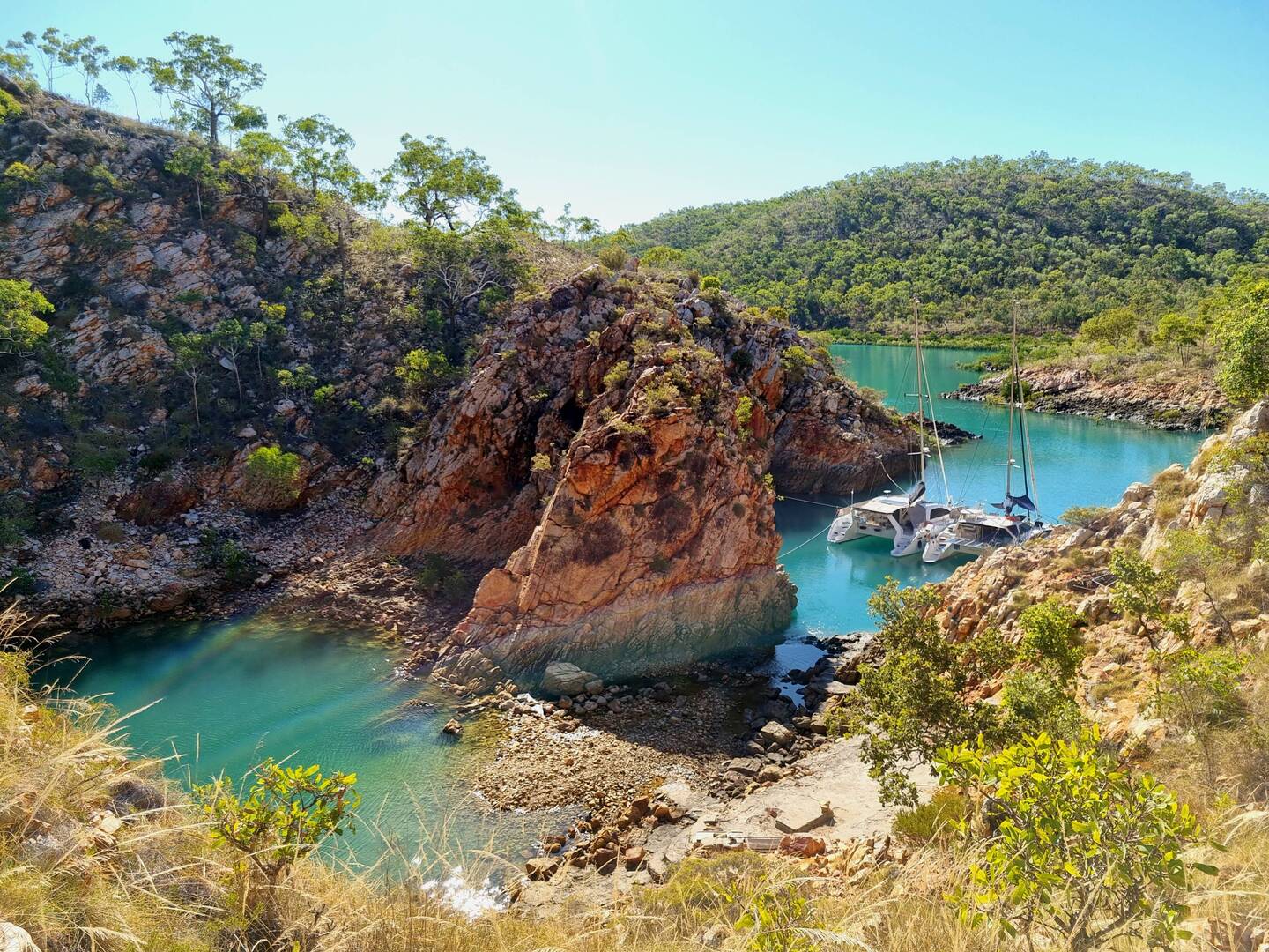 ⚓️ 3 nights in this amazing spot (deep hole) @ the end of 🐊 creek. Just enough room for 2 Catamarans, tied to the walls & each other... held like🕷 🕸. On arrival it looked like we wouldn'tBaca lagi