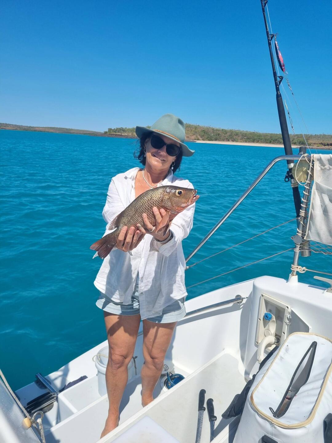 Catching the tide we head north to DECEPTION BAY. Great anchorage with lots to explore (with 🎣 ) over 3 days we traversed bays. beaches & creeks. Finally 🐟 success with us landing cod & mangroveBaca lagi