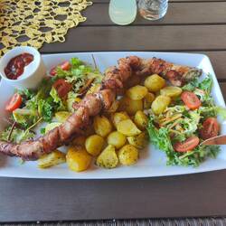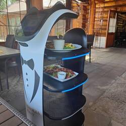 Poco dopo il confine mi sono fermato in un ristorante tipico, fatto tutto in legno, la sorpresa è stata un cameriere robot che è arrivato con il piatto. Da lì poi dritto fino a casa di mia nonna.