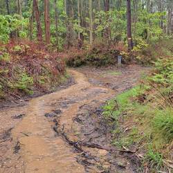 The rain was on and off again today, along with some very high winds. In the ucalyptus tree forest, many were cracking in the wind. I thought for sure that some would come down. I made it to a veryBaca lagi