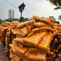 TravelerDat zijn zakken vol bloemen. Die bloemen worden hier gebruikt om cadeau te doen aan de Buddha. Ze nemen die mee naar tempels, hangen die aan gebedstekens in huis, in hun auto’s,….