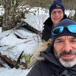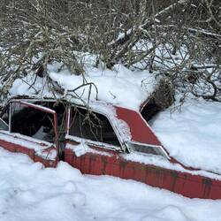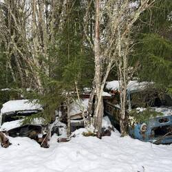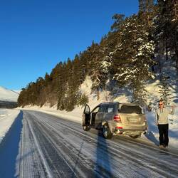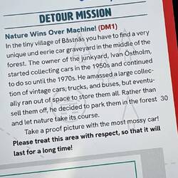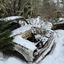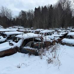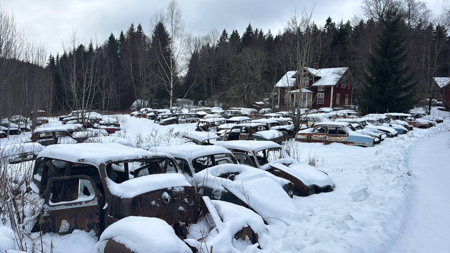 Bei Halden biegen wir von der Autobahn ab und fahren nach Bastnäs. Dies ist die erste Detour Mission der Rallye. Die Aufgabe besteht darin, einen alten Autofriedhof auf der schwedischen Seite zu finden. Die letzten 10 Kilometer fahren wir auf einer schneebedeckten Schotterstrasse. Es kommt richtiges Rallyefieber auf. Bei Bastnäs besuchen wir den Autofriedhof und schicken als Beweis ein Bild an die Rallyeleitung via WhatsApp. Der Friedhof ist eindrücklich: hunderte von alten Autos stehen hier im Wald herum.Read more