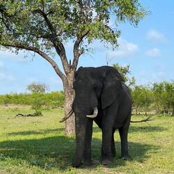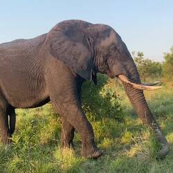 The evening safari started with the viewing of our third „Big 5“-animal: the Elephant! Very impressive to see it so close. He was not far from the lodge. Not long after, we met another one alongRead more
