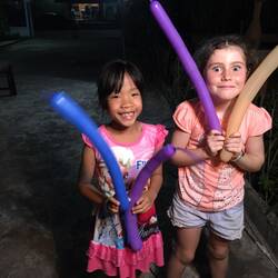 We are humbled by the openness with which we have been received by the trainees at OMP and the hospitality we have been shown over the past three days. Yesterday was Olivia’s seventh birthday. That’s ‘jet’ in Thai, she knows how to say “Hello I’m Olivia, I am seven years old and I am from New Zealand” in Thai. One of the Thai staff who works at Open Mind has a daughter named Neom who comes to OMP each day after school and she and Olivia have become instant friends. They are the same age, exactly. Sharing their birthday has bonded them for life. So yesterday evening they threw a big party for Neom and Olivia and showered both of them with gifts, and ice cream cake. I was so blown away by the generosity and attention that I couldn’t even take photos but Matt took some and I’ll put some on here for Olivia’s memories.Weiterlesen