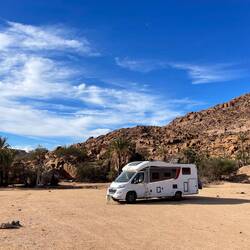 Tafraout stand bei uns ganz oben auf der Liste. Waren letztes Jahr schon da und wollten unbedingt wieder hin. Zwischenzeitlich war es aber verboten im Palmenhain am Fusse der Granitfelsen frei zu stehen. Die ausbleibenden Camper haben die lokalen Behörden aber wohl zu einem Umdenken bewogen. Seit 14 Tagen ist es wieder erlaubt frei zu stehen.