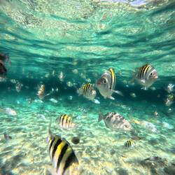 Aalglattes Wasser schneidet später der Katamaran vor der Küste des ‚parque nacional submarino montecristi‘. An einem vorgelagerten Riff halten wir im Piscina Natural. Einem Naturschwimmbad mitten im Meer. Hier gibt es nur ein wenig Seegras im flachen Wasser und mich friert. Mensch ist das Atlantikwasser kalt heute! Ob das so eine gute Idee war heute schnorcheln zu gehen nachdem ich mich zwei Tage verausgabt hatte? Doch es bleibt genügend Zeit nachher wieder aufzuwärmen. Das eigentliche Ziel ist Cayo Arena. Nicht viel mehr als eine Sandbank von 15x15m umgeben von einem Korallenring und herum dann tiefer Atlantik. Das ist was die Karibik nun einmal ausmacht. Türkisblaues Wasser und viiiele bunte Fische. Bei Ananashäppchen kann ich mich auf dem Sand immer wieder aufwärmen. Zwischendurch geht es ins Riff schnorcheln. Die Fische sind zahm und neugierig. Sie kommen bis auf Augenhöhe an mich heran geschwommen. Irgendwann knallt die Sonne so sehr dass es wieder zurück an den Strand von Punta Rucia geht. Dank dass ich mobil bin bleibe ich jedoch nicht lange. Am Nachmittag fahre ich zu einem Besuch in das Santuario mamiferos marinos. Eine langgestreckte Süswasserlagune in der herrliches Seegras wachsen muss. Dadurch haben sich hier Seekühe angesiedelt. Doch die Sonne steht so schlecht dass ich außer ein paar Fischen nicht viel sehen kann. Mit einem Paddleboard in der Mittagssonne wäre das sicher ein Leichtes und irgendwann steht der Besuch von Manatis definitiv auch nich auf dem Programm. Nicht nur die Karibik, auch die Bahamas und die Südstaaten sind ihr riesiges Einzugsgebiet wo sie gerne im flachen Wasser grasen.Læs mere