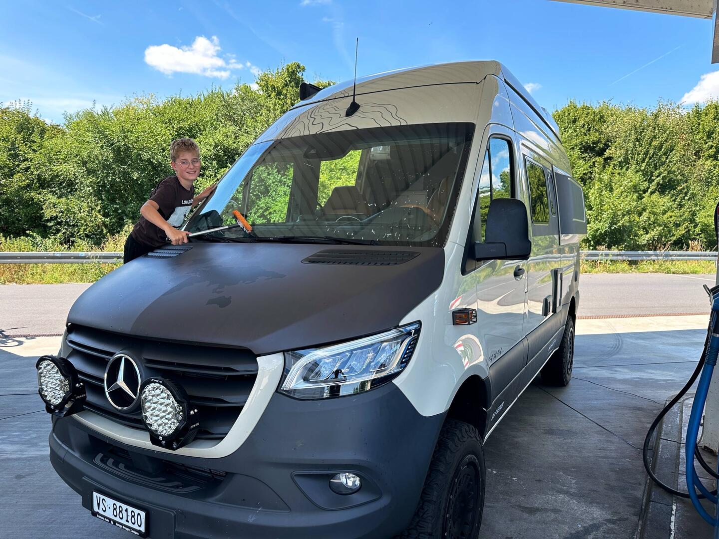 Anreise zum Camping Fuldaschleife nähe Kassel. Heute führen wir gegen 05.00 los und sind um 14.15 angekommen. (Um die 700km). Alles Top! Antoine hat schon das erste mal Putzdienst😂