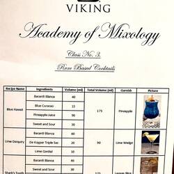 So we are continuing our life long learning as we attend today’s Mixology Session on Rum. We learned how to make; Blue Hawaii, Daiquiri, and Shark’s Tooth.