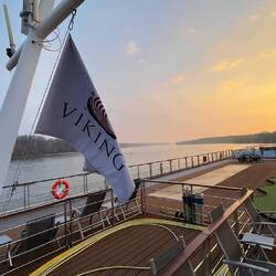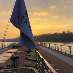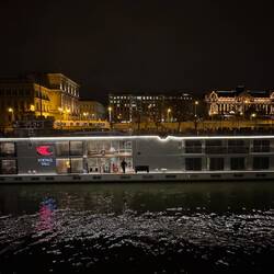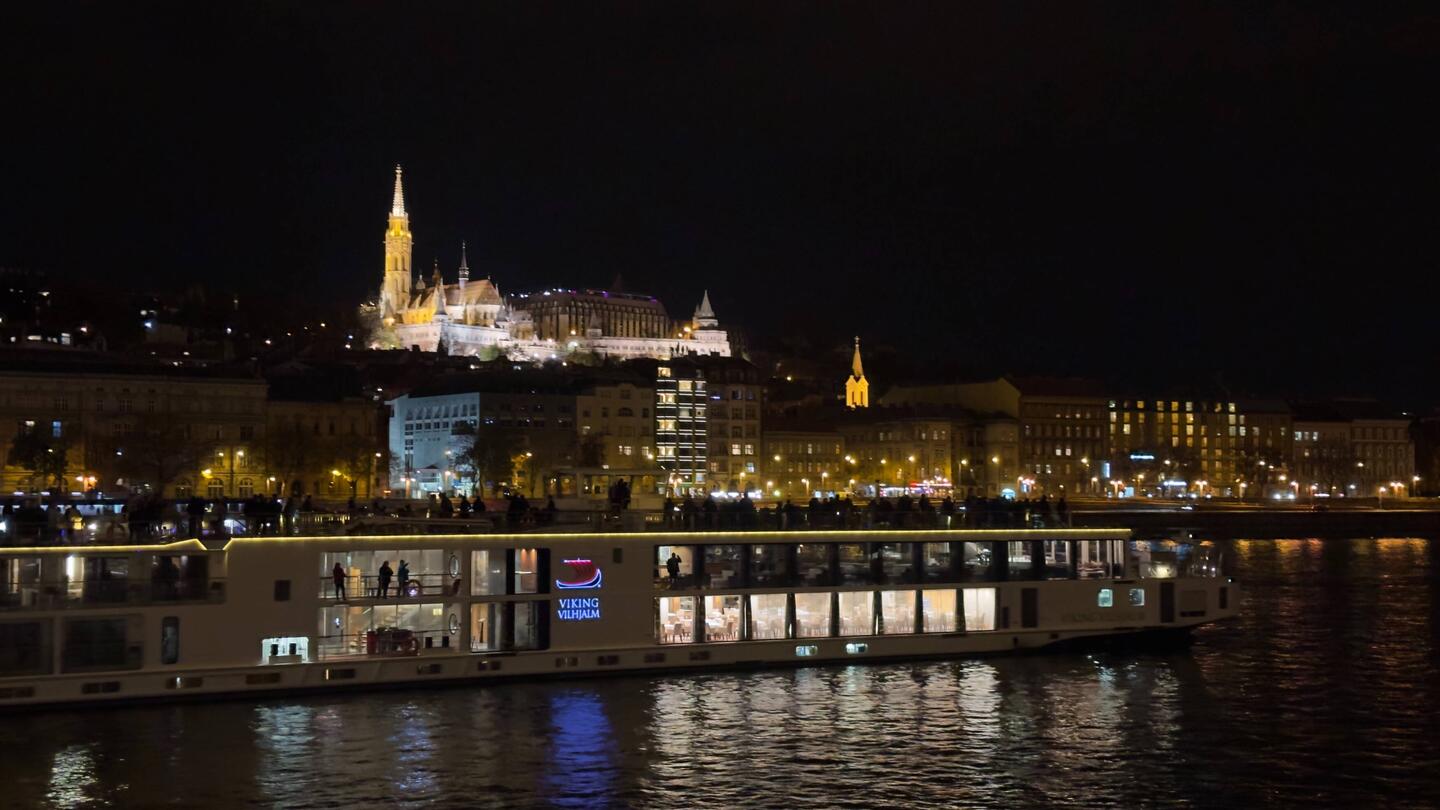 The lines were released, the thrusters quietly pushed us away from the Viking Vali still moored to the shore, and the Viking Vilhjalm took that moment to glide past us on the port side. I think they wanted to challenge us to a race up the Danube. Captain Juri Tolkacev knew better. This was not the night for speed or bravado. If it were, The Rinda would win easily. But this moment called for awe and reflection.