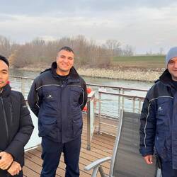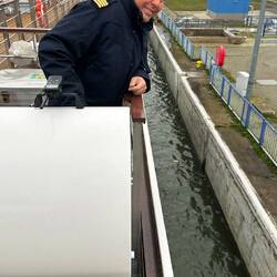 There was Captain Jurij Tolkacev, stationed at the side wheelhouse, eyes constantly moving, scanning bow to stern. These locks are tight — sometimes narrow enough that you could almost touch the walls as we pass. His focus was absolute. With tiny taps of the thrusters, he gently nudged the ship, keeping us perfectly parallel to the concrete edge. Inch by inch, we slipped through without a scrape.