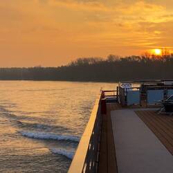 The crew let me slip into the “Crew Only” area so I could capture a few photographs of the sun rising over the Danube. They didn’t have to, but that’s the Rinda way — always a kindness tucked into the day. The morning light was soft and silver, the river as calm as a deep breath.