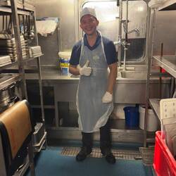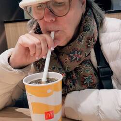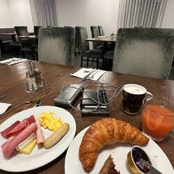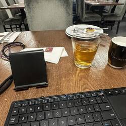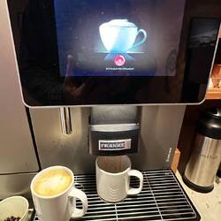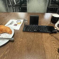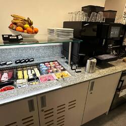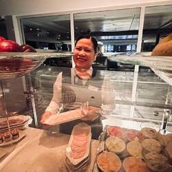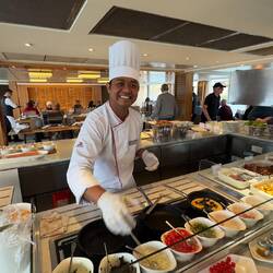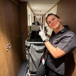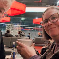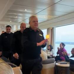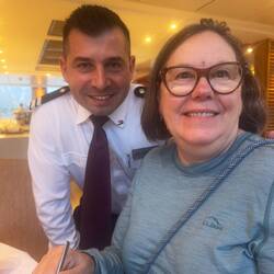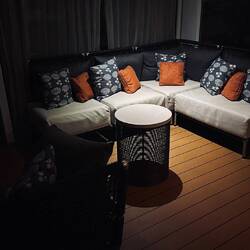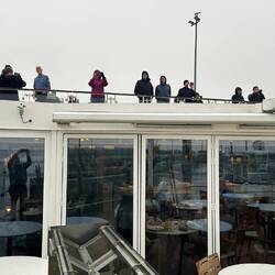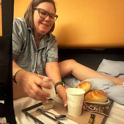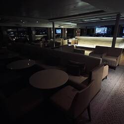 I peeked in on Donna — she was peacefully enjoying her sleep — then had a quick chat with Romona before heading to the coffee station. Two cappuccinos later, I was settled into my usual spot, catching up on my FindPenguins posts while the morning slowly unfolded around the ship.