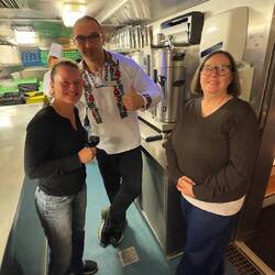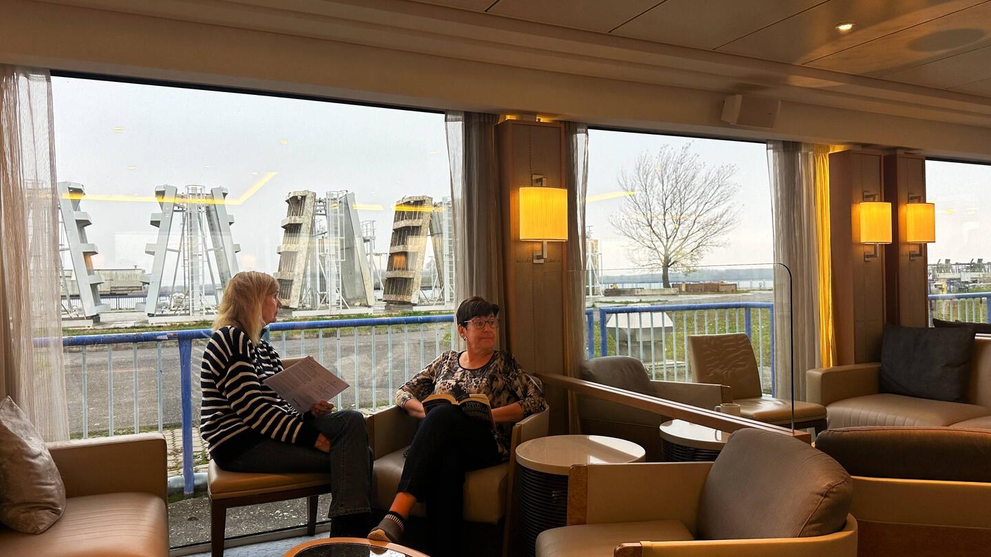 I chatted with a few of the crew — everyone on board has a story, and if you take the time to listen, you’ll hear some fascinating journeys. I had a bit of administrative work to take care of: Emil and Thomas at Guest Services, as always, were incredibly accommodating. When we arrive in Vienna, we’ll need a couple of taxis for our excursions and then a ride to the main train station to begin the next leg of this three-month adventure. They made it all seem easy.