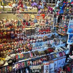 Upstairs was Trinket Over-Load—embroidered linens, carved wood, leather bags, magnets, toys, paprika in every shape and size. If the lower floor was daily life, the upper floor was pure souvenir carnival.