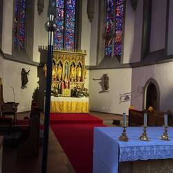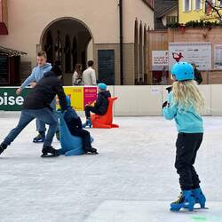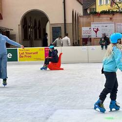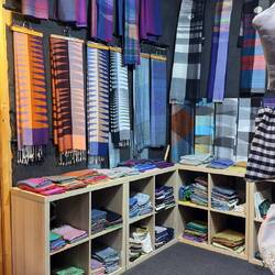 Hand in hand, we made our way toward the Christmas Market. The air carried a mix of cinnamon, smoke, and mulled wine. One booth stopped me cold—a woman sitting at a loom weaving a scarf right there in front of us. The pieces hanging behind her looked like they belonged in a museum. There’s something grounding about watching someone create with such patience and pride.