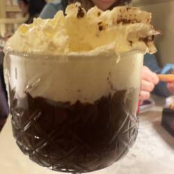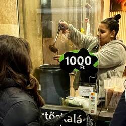 For 1,000 forint, we sat down with a traditional cinnamon chimney cake. Honestly? It was more fun watching them prepare it than eating it. Cooked dough wrapped in sugar and cinnamon… simple, warm, but the show was the real treat.