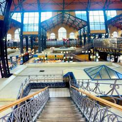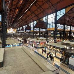 We hopped on the trolley and rode four stops down, then walked up toward the Belvárosi Market Hall in the Ferencváros district. This neighborhood goes back to the late 1800s, when it was the bustling trade-and-warehouse quarter of the city. You can still feel that history in the old brick buildings, iron balconies, and cafés tucked into corners that look unchanged for generations.