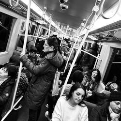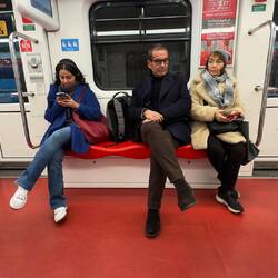 Through the open doors between train cars, I could see a young man being thoroughly questioned. The officers had him empty his entire backpack — every item examined as though it might reveal the plot of a spy novel.