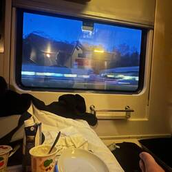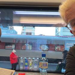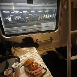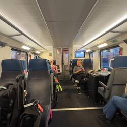 Once on the train, life slipped into a calm rhythm. Mountains glided past the window, the rails offered their steady clickity-clack, and occasionally a passing train gave a powerful WOOOSH that shook the windows. A peaceful 3+ hour ride — a rare, built-in moment to simply breathe.