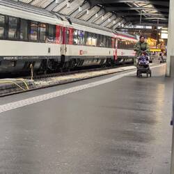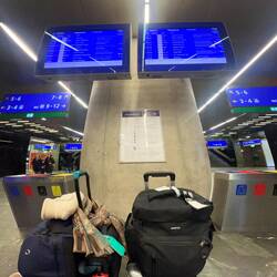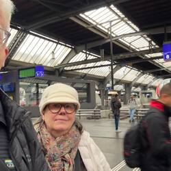 We did a self-checkout from the hotel and dragged our carry-ons, backpacks, and CPAP machines over the cobblestone streets toward the bus stop. The wait was short. The local bus carried us to Schaan-Vaduz Station, the main rail connection for the principality. From there, we managed to catch an earlier train to Zürich HB — a nice bonus. Once in Zürich, we felt like old pros. We’ve been through this station before, and it’s always reassuring to return to a place that feels familiar.