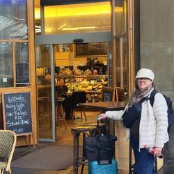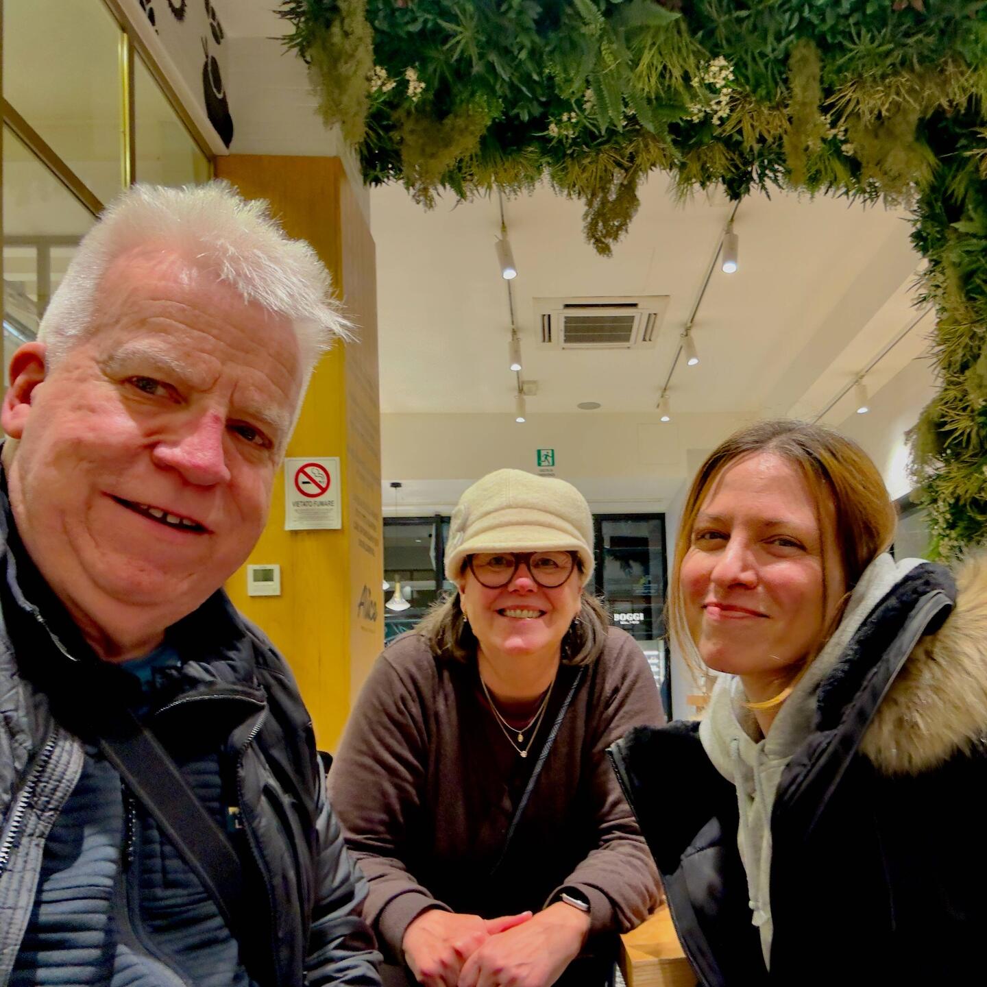 We had a bit of time before our train to Milan, so we ducked into a café perfectly — almost suspiciously — named “Oscars.” Since that’s our grandson’s name, it was a no-brainer. I ordered the Oscar’s Special. We settled in with hot chocolates and croissants and quietly claimed a table for over two hours. We made sure to order more than one round and left a healthy tip. We were definitely not the only two people there obviously “killing time.”