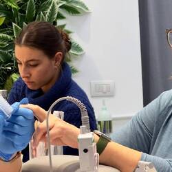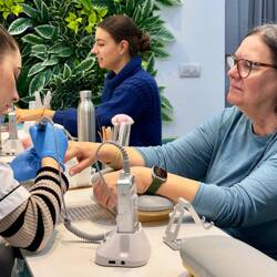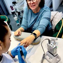 I kept snapping photos, watching Donna’s smile get bigger with each brush stroke. The other women in the shop were clearly in their own happy places too. Milan has that effect on people. This city doesn’t treat style as a luxury — here, style is oxygen. It’s in the clothes, the architecture, the attitudes… and yes, in the nail studios.