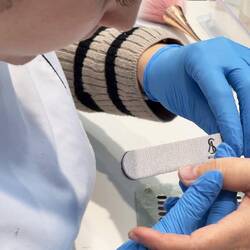 With the help of one of the ladies acting as interpreter, Donna explained to the manicurist at Nail Fata that she wanted the same design recreated. The goal was clear; the question was whether Milan artistry could match East Windsor precision.