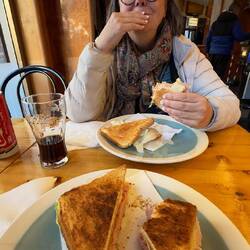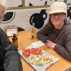 While we ate, a young woman at the table across from us struck up a conversation — energetic, friendly, the kind of person who genuinely loves her city and wants you to love it too. She gave us a handful of restaurant recommendations for our visit. I feel terrible that I forgot her name, but we were running on fumes and melted cheese. Her kindness, though, stuck with us.